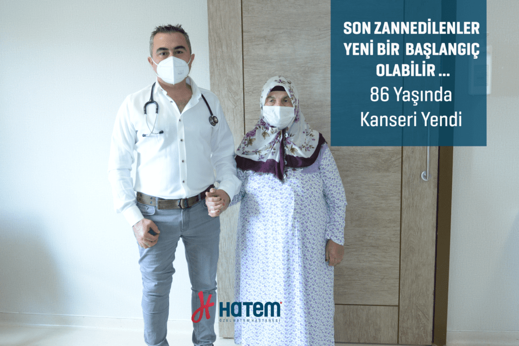 Gaziantep’te yaşayan, yemek borusu kanseri tanısı konulan 86 yaşındaki Ayşe Demir, Gaziantep Özel Hatem Hastanesi’nde Genel Cerrahi ve Kanser Cerrahisi Uzmanı Op. Dr. Selçuk Arslan tarafından uygulanan total gastrektomi + distal özefajektomi ameliyatı ile sağlığına kavuştu.